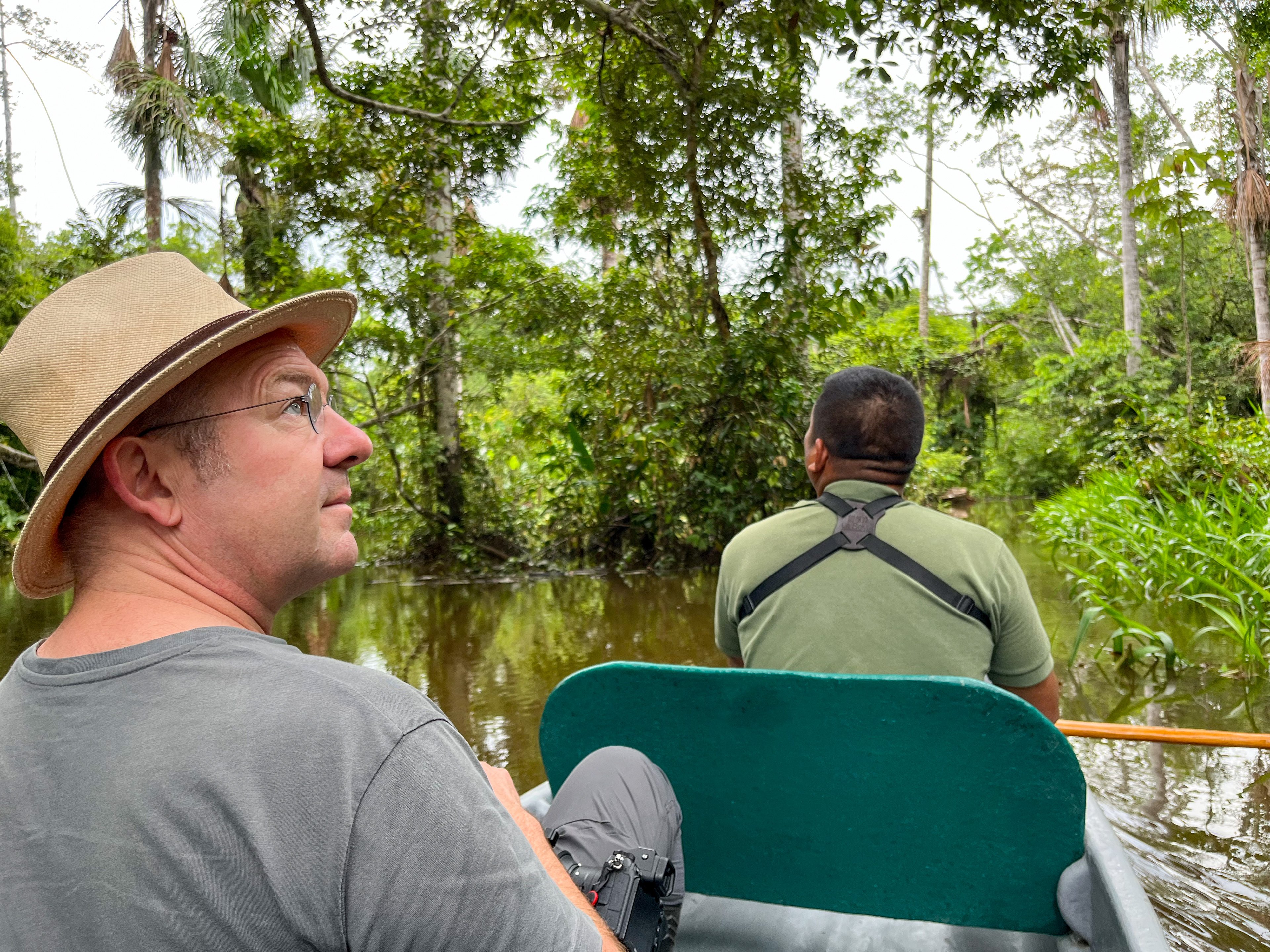 Oktober 2022: na 30 jaar terug naar Zuid - Amerika. Alvorens aan te sluiten bij een groepsreis naar de Galapagos, trokken we eerst een tiental dagen rond in het Noorden van Ecuador. Eerst verkenden we de ruime omgeving van Mindo, in de cloud-forest. Onder de deskundige begeleiding van Dr. Heike Brieschke leerden we prachtig gekleurde vogels kennen: toekans, kolibries, tanagers, valken, spechten, gieren... We reisden verder naar de mooie koloniale hoofdstad Quito, om tenslotte door te reizen naar de Amazone. Na een tocht van 2 uur met een speed-prauw op de Napo river, stapten we over op een roeiboot richting LA SELVA. Wat een pracht!